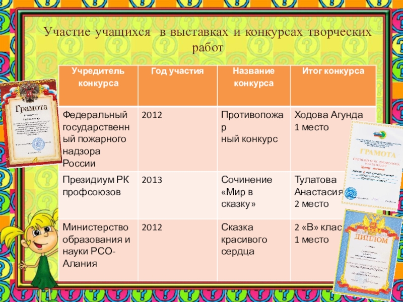 выставках и конкурсах творческих работ.