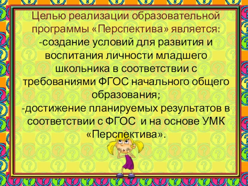 Слайд 12Целью реализации образовательной программы «Перспектива» является: