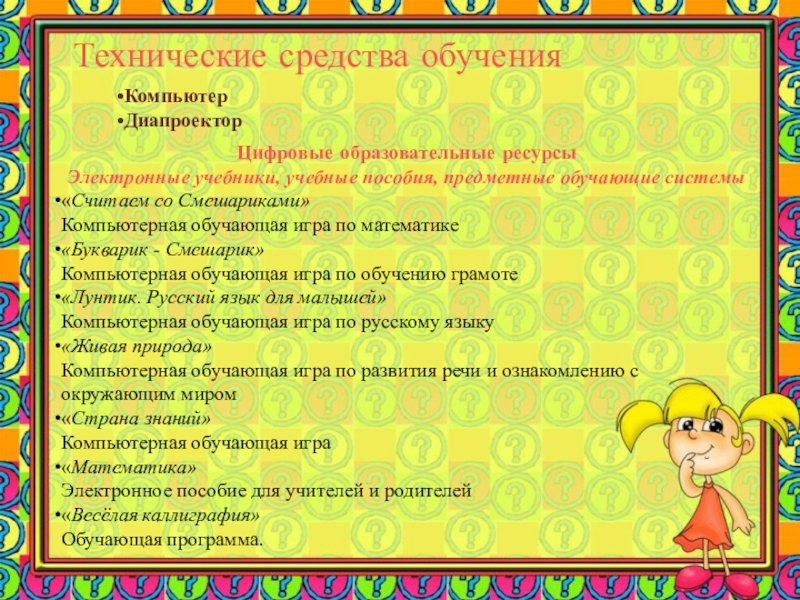 Технические средства (Компьютер, диапроектор)