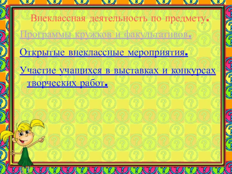 Слайд 36Внеклассная деятельность по предмету.