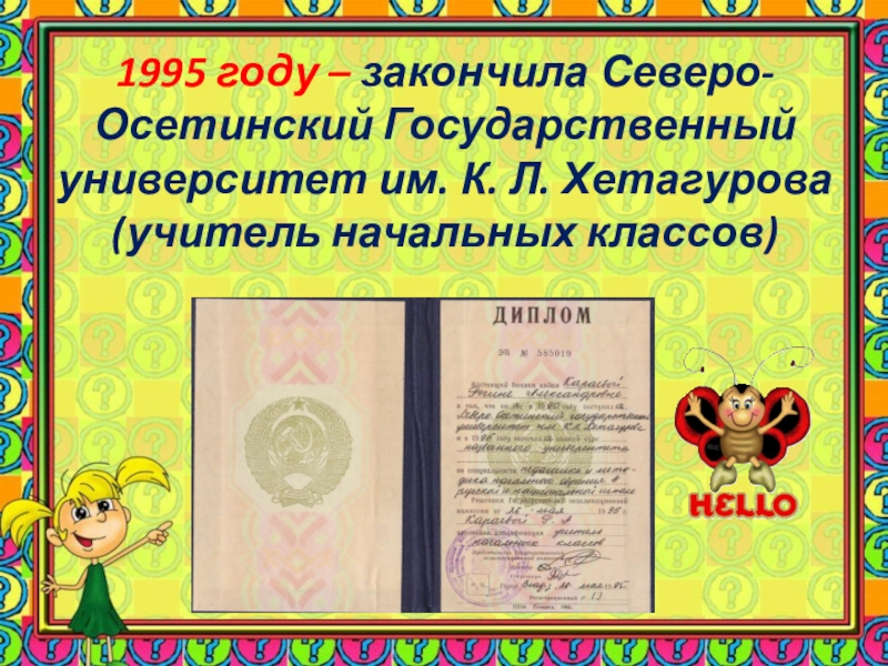 Слайд 61995 году – закончила Северо-Осетинский Государственный университет им. К. Л. Хетагурова