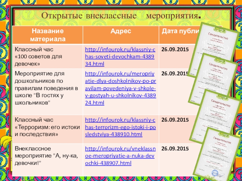 Открытые внеклассные мероприятия.