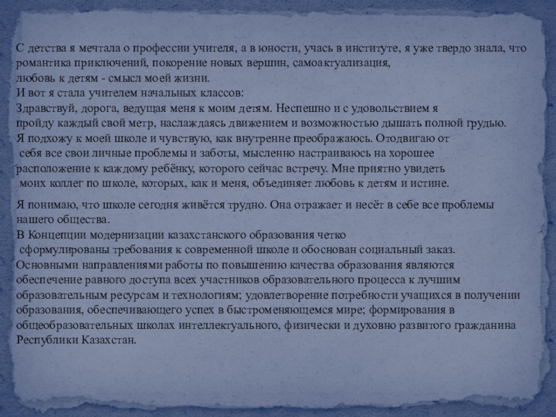 Слайд 8С детства я мечтала о профессии учителя, а в юности, учась