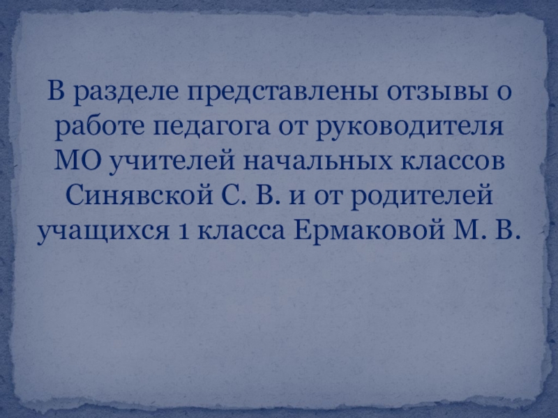 Слайд 45В разделе представлены отзывы о работе педагога от руководителя МО учителей
