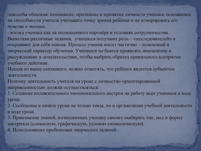 Слайд 23-способы общения: понимание, признание и принятие личности ученика, основанное на способности