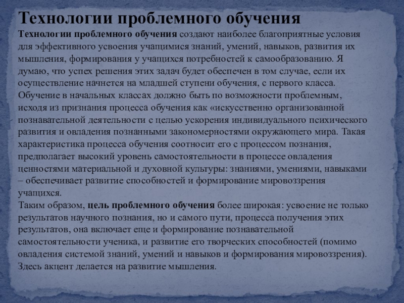Технологии проблемного обучения создают наиболее благоприятные условия для эффективного усвоения