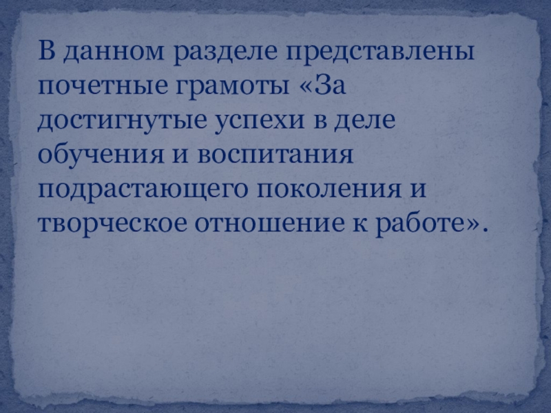 Слайд 48В данном разделе представлены почетные грамоты «За достигнутые успехи в деле