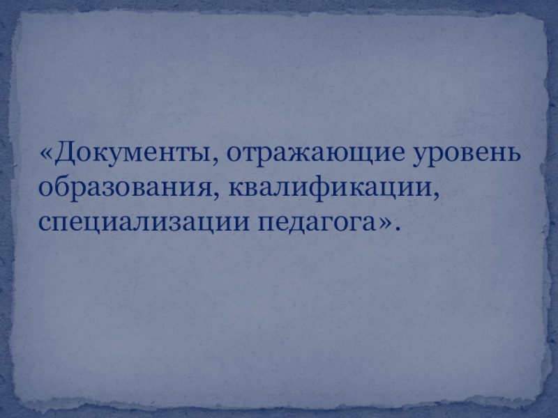 Слайд 47«Документы, отражающие уровень образования, квалификации, специализации педагога».