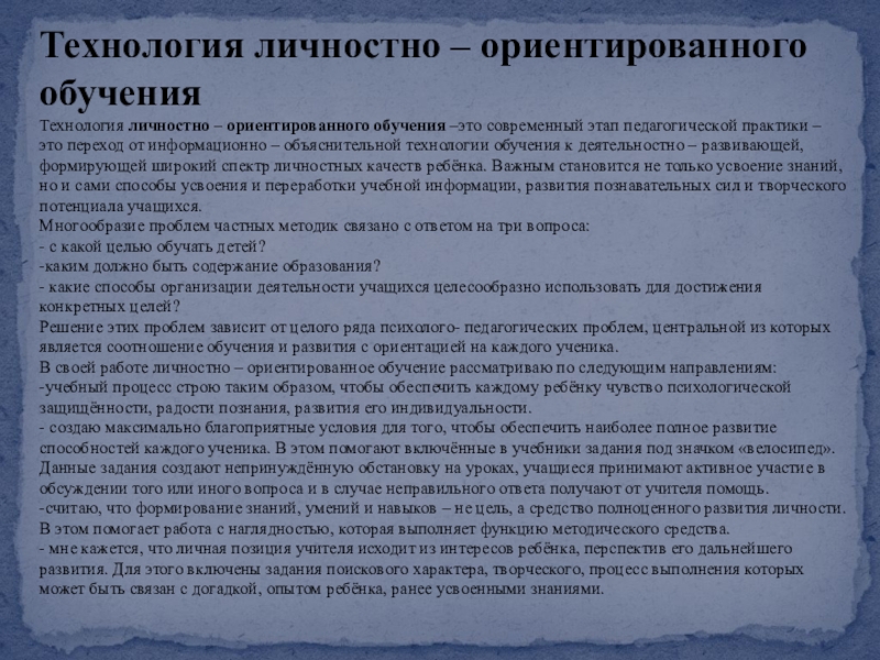 Технология личностно – ориентированного обучения –это современный этап педагогической практики