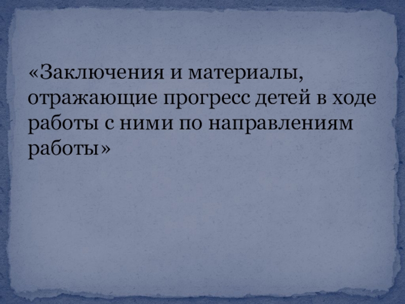 Слайд 36«Заключения и материалы, отражающие прогресс детей в ходе работы с ними