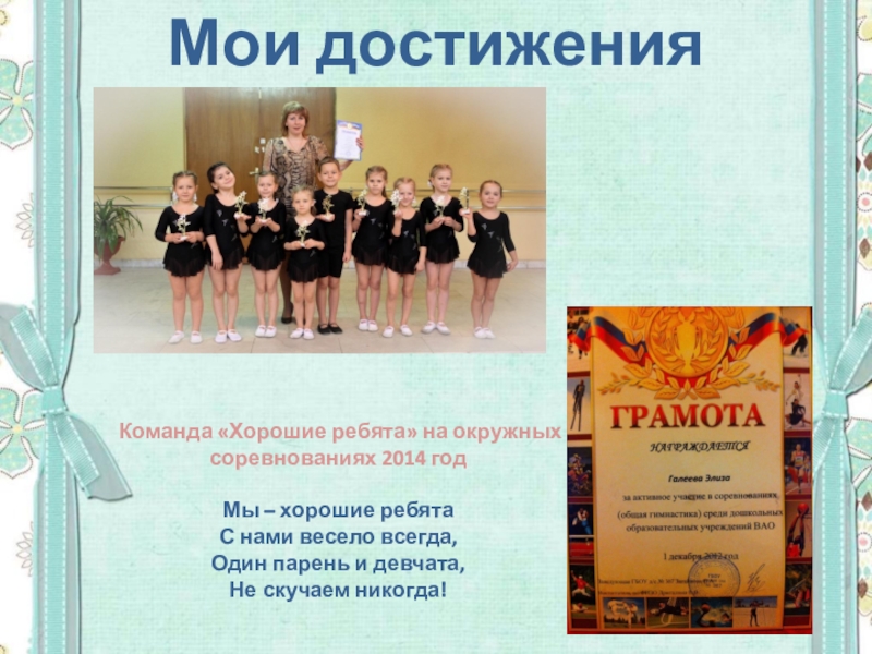 Мои достижения  Команда «Хорошие ребята» на окружных соревнованиях 2014 год Мы – хорошие ребятаС нами весело