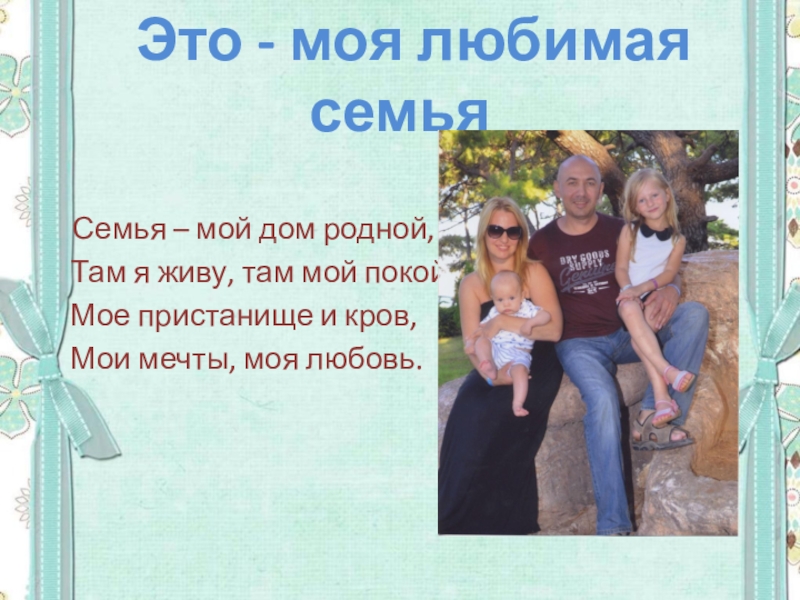 Это - моя любимая семья   Семья – мой дом родной,  Там я живу,