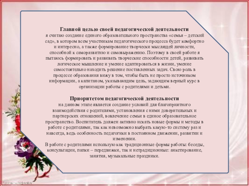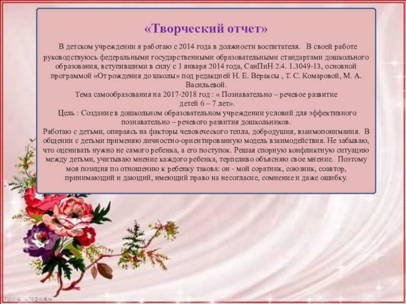 Я – созидатель! Не зря ведь детей называют «цветами жизни», а воспитателей –