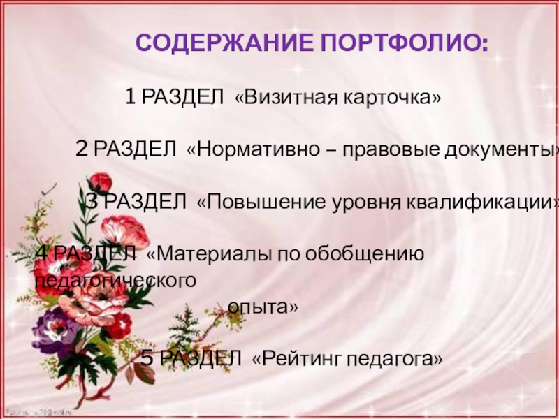 СОДЕРЖАНИЕ ПОРТФОЛИО:
