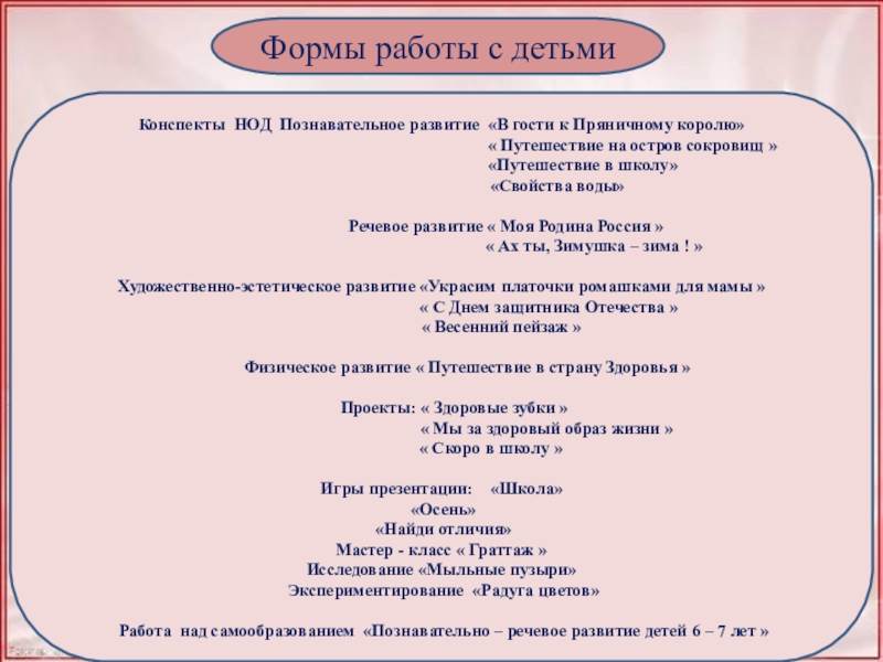 Работа над самообразованием «Познавательно – речевое развитие детей 6 – 7 лет »