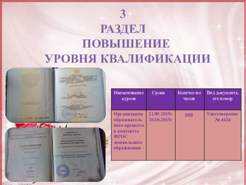 3 РАЗДЕЛ «Повышение уровня квалификации»