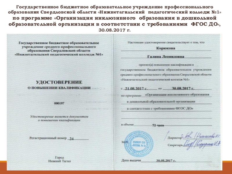 Слайд 12Государственное бюджетное образовательное учреждение профессионального образования Свердловской области «Нижнетагильский педагогический колледж