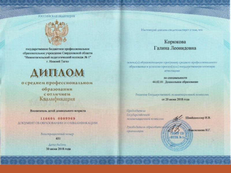 Образование: Государственное бюджетное профессиональное образовательное учреждение Свердловской области «Нижнетагильский