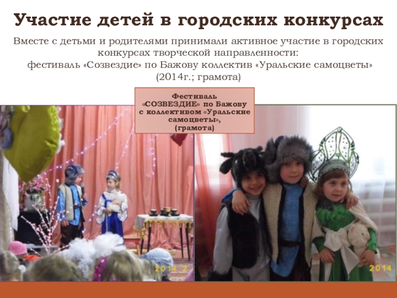 фестиваль «Созвездие» по Бажову коллектив «Уральские самоцветы» (2014г.; грамота)