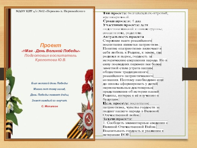 МДОУ ЦРР д/с №12 «Теремок» п. Первомайского