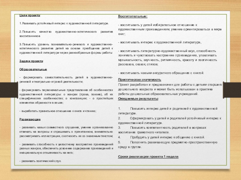 2. Сформировать у детей и родителей устойчивый интерес к художественной литературе.