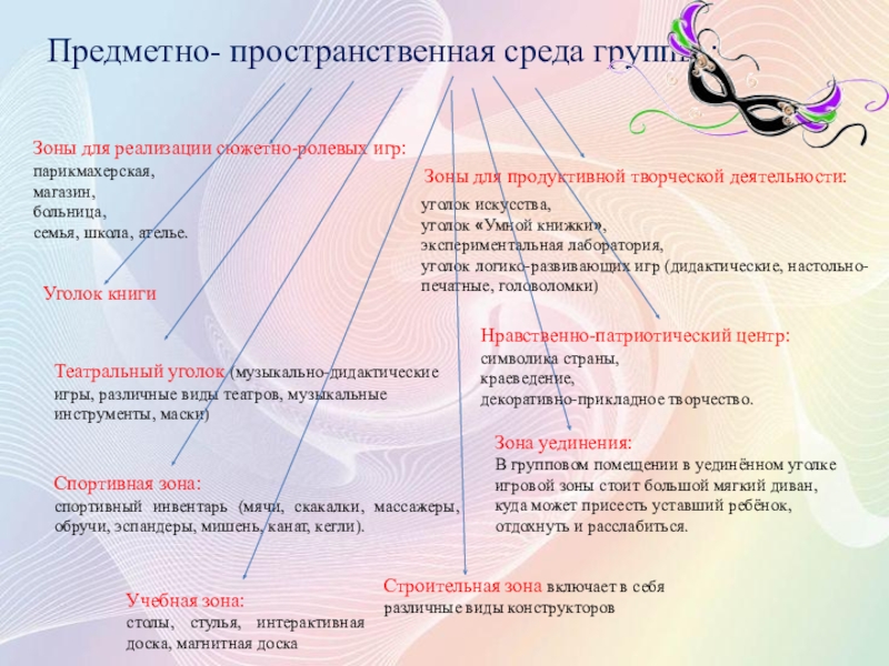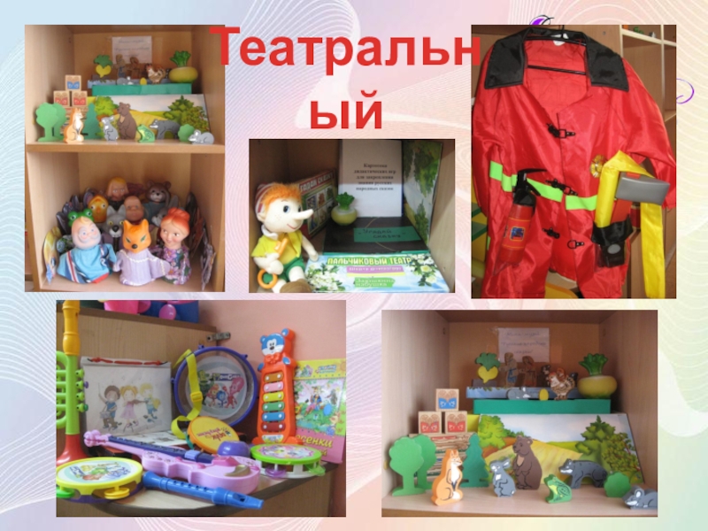 Театральный уголок (музыкально-дидактические игры, различные виды театров, музыкальные инструменты, маски)