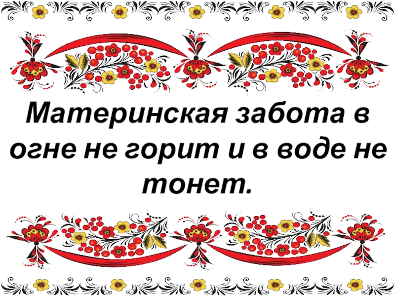 Слайд 5Материнская забота в огне не горит и в воде не тонет.