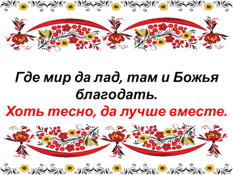 Слайд 8Где мир да лад, там и Божья благодать. Хоть тесно, да лучше
