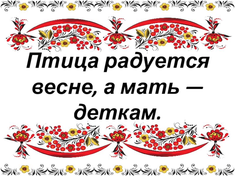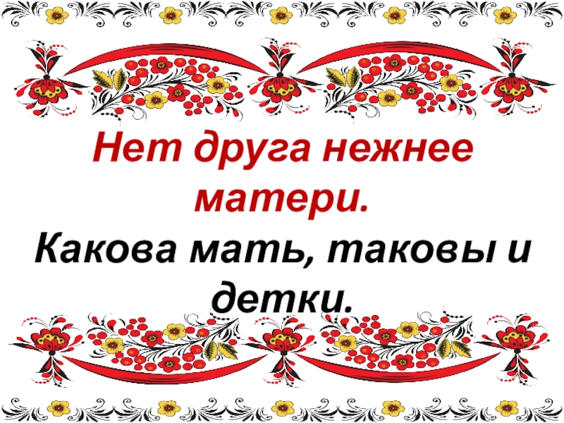 Слайд 1Нет друга нежнее матери. Какова мать, таковы и детки.