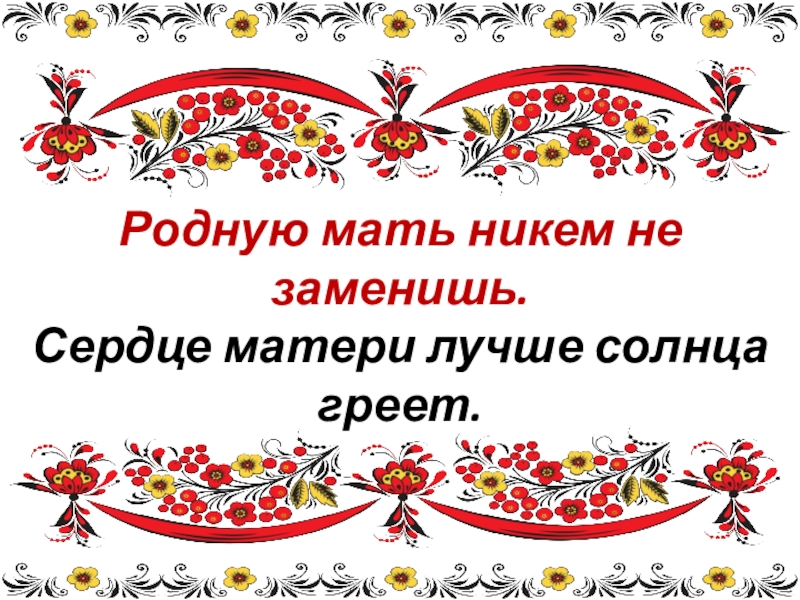 Слайд 6Родную мать никем не заменишь. Сердце матери лучше солнца греет.
