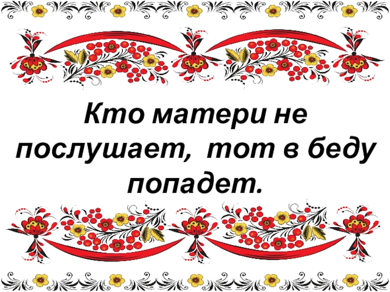 Слайд 3Кто матери не послушает, тот в беду попадет.
