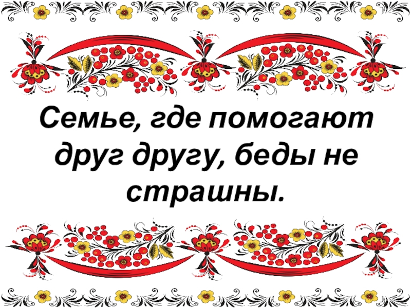 Слайд 9Семье, где помогают друг другу, беды не страшны.