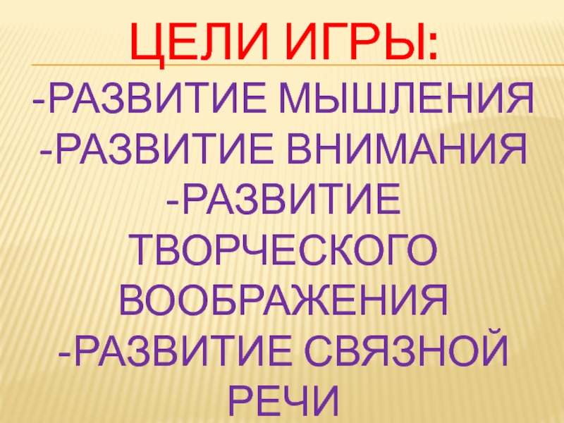 Слайд 2Цели игры: -развитие мышления -развитие внимания -развитие творческого воображения -развитие связной речи