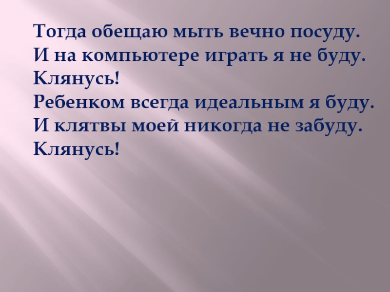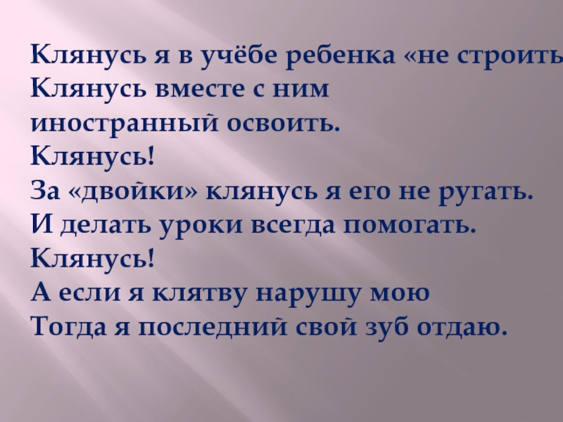 Слайд 70Клянусь я в учёбе ребенка «не строить».