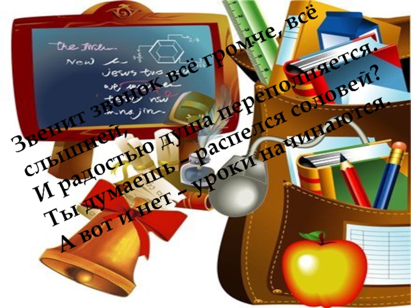 Слайд 23Вот звонок звенит, заливается –