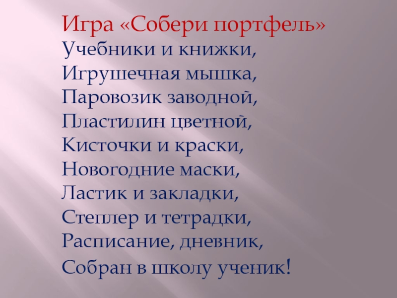 Слайд 31Игра «Собери портфель»