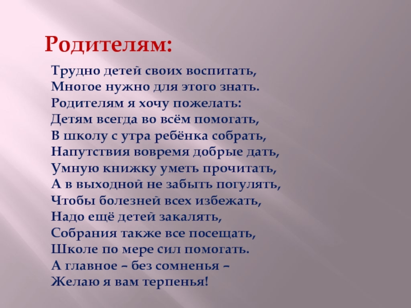 Родителям я хочу пожелать: