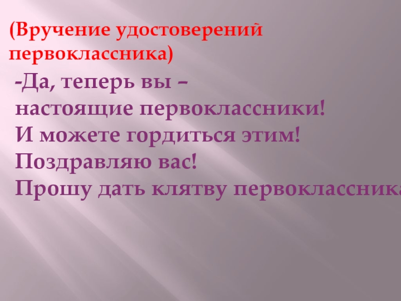 (Вручение удостоверений первоклассника)
