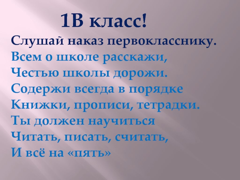 Слушай наказ первокласснику.