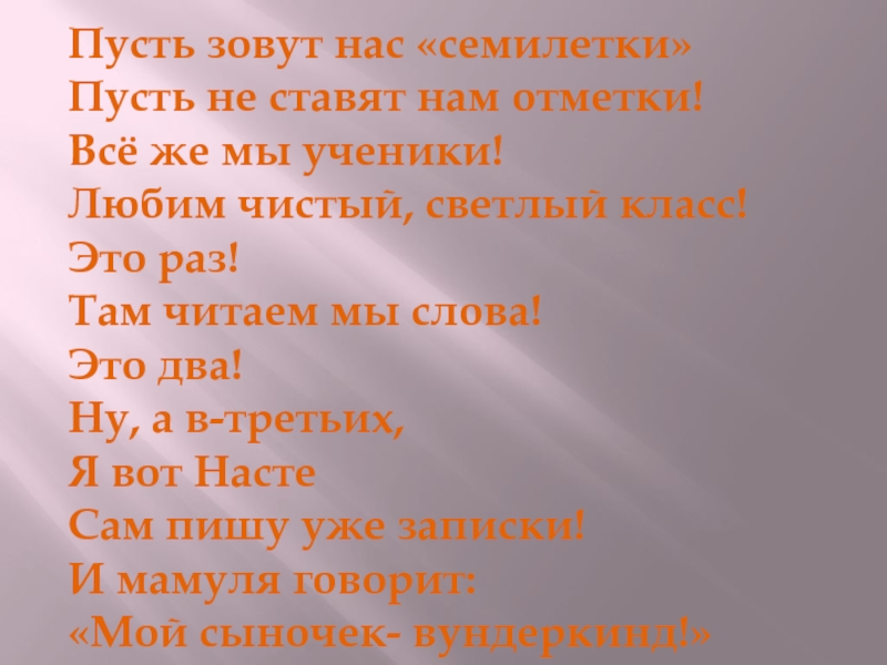 Слайд 25Пусть зовут нас «семилетки»