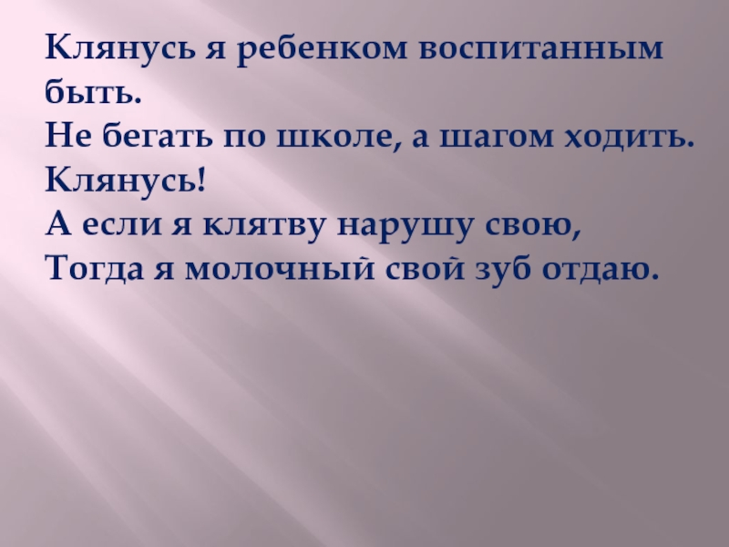 Слайд 65Клянусь я ребенком воспитанным быть.