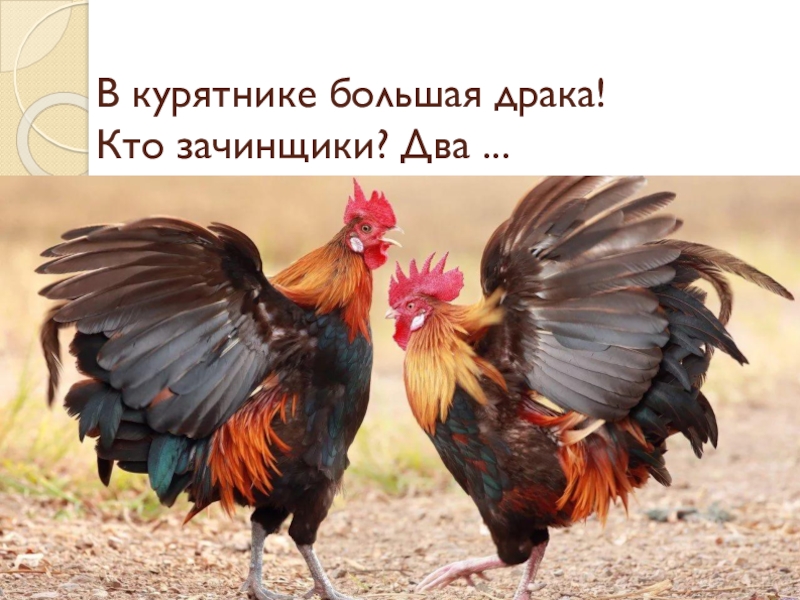 Слайд 11В курятнике большая драка! Кто зачинщики? Два ...