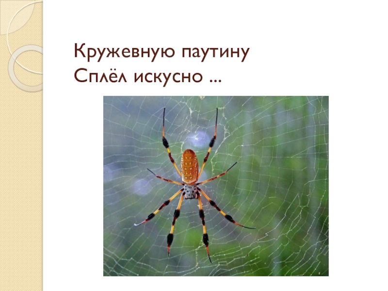 Слайд 10Кружевную паутину Сплёл искусно ...
