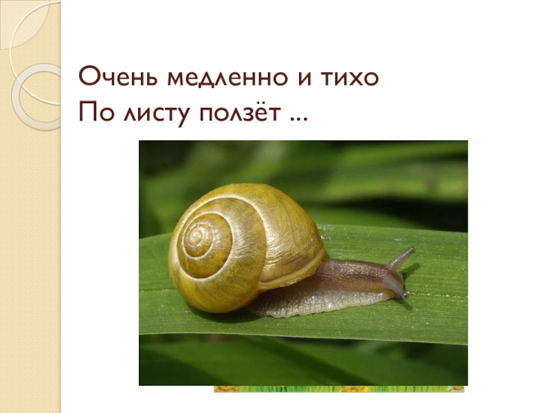 Слайд 12Очень медленно и тихо  По листу ползёт ...