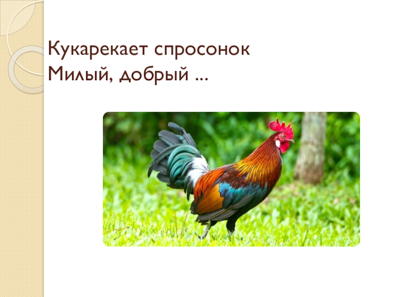 Слайд 7Кукарекает спросонок Милый, добрый ...
