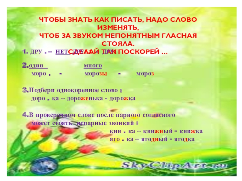 4.В проверочном слове после парного согласного