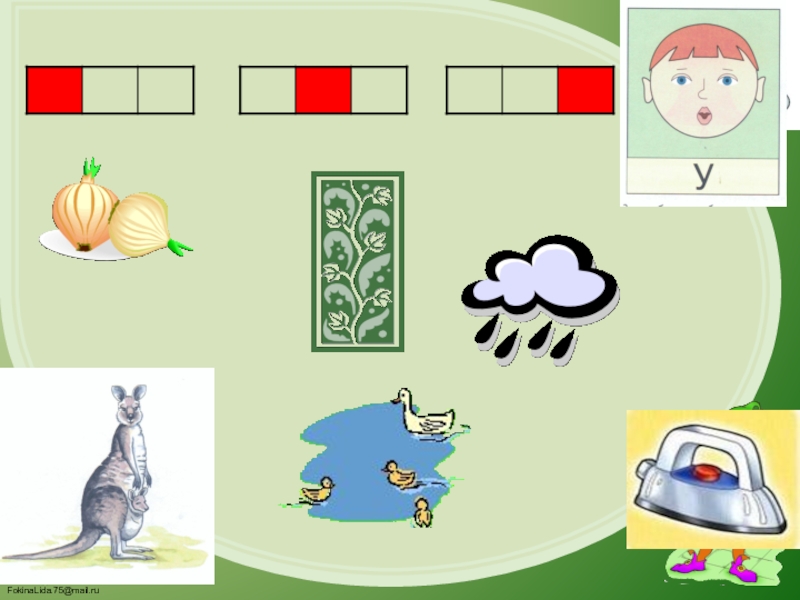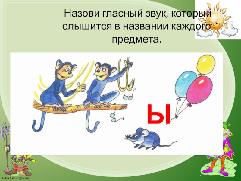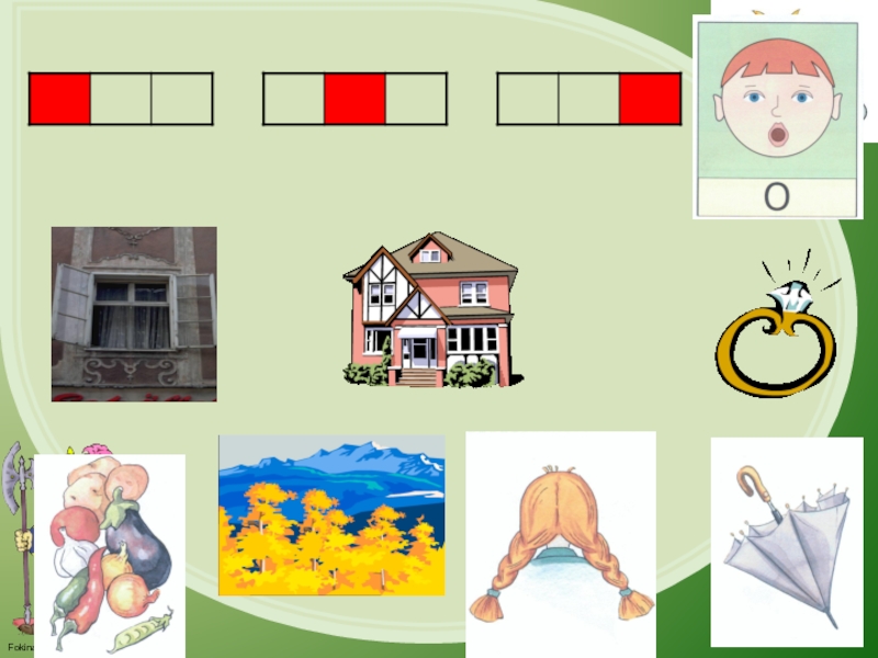 Слайд 134. Определи, какой гласный звук есть в названии каждого предмета, и
