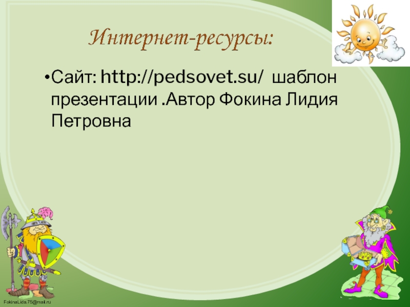 Слайд 14Сайт: http://pedsovet.su/ шаблон презентации .Автор Фокина Лидия Петровна