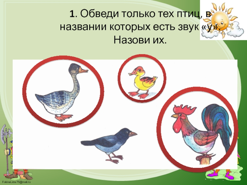 Слайд 61. Обведи только тех птиц, в названии которых есть звук «у».