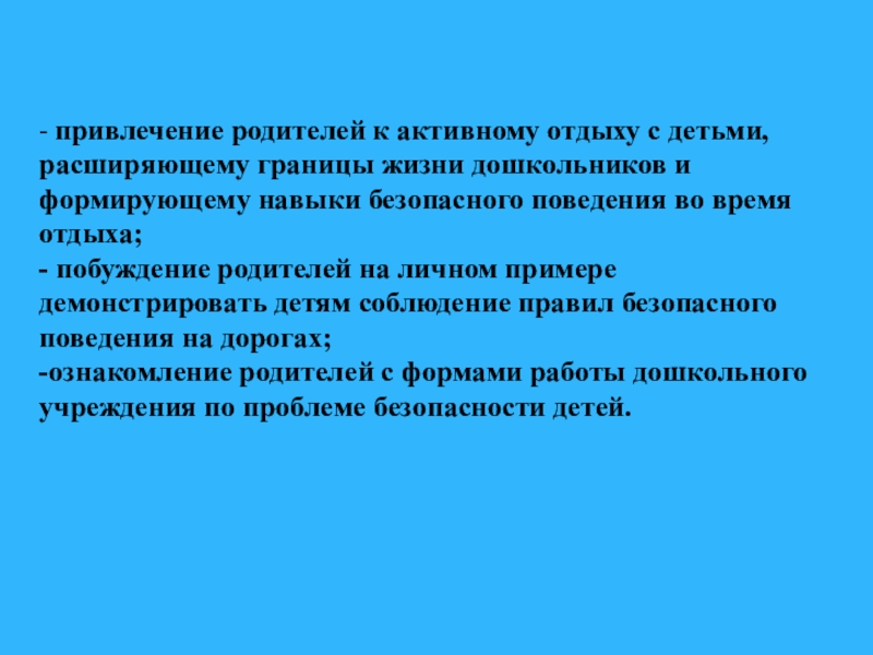 Слайд 13- привлечение родителей к активному отдыху с детьми, расширяющему границы жизни